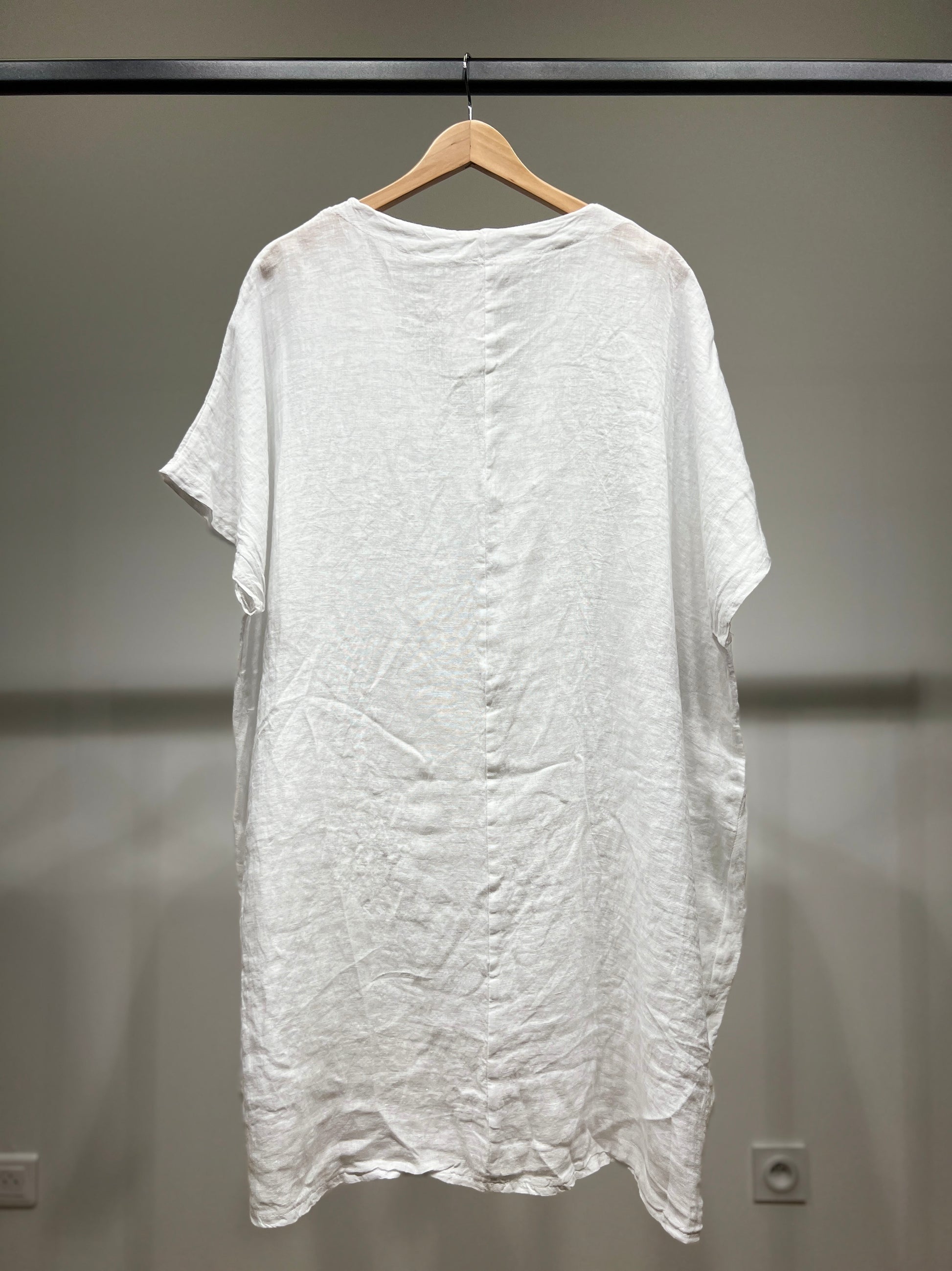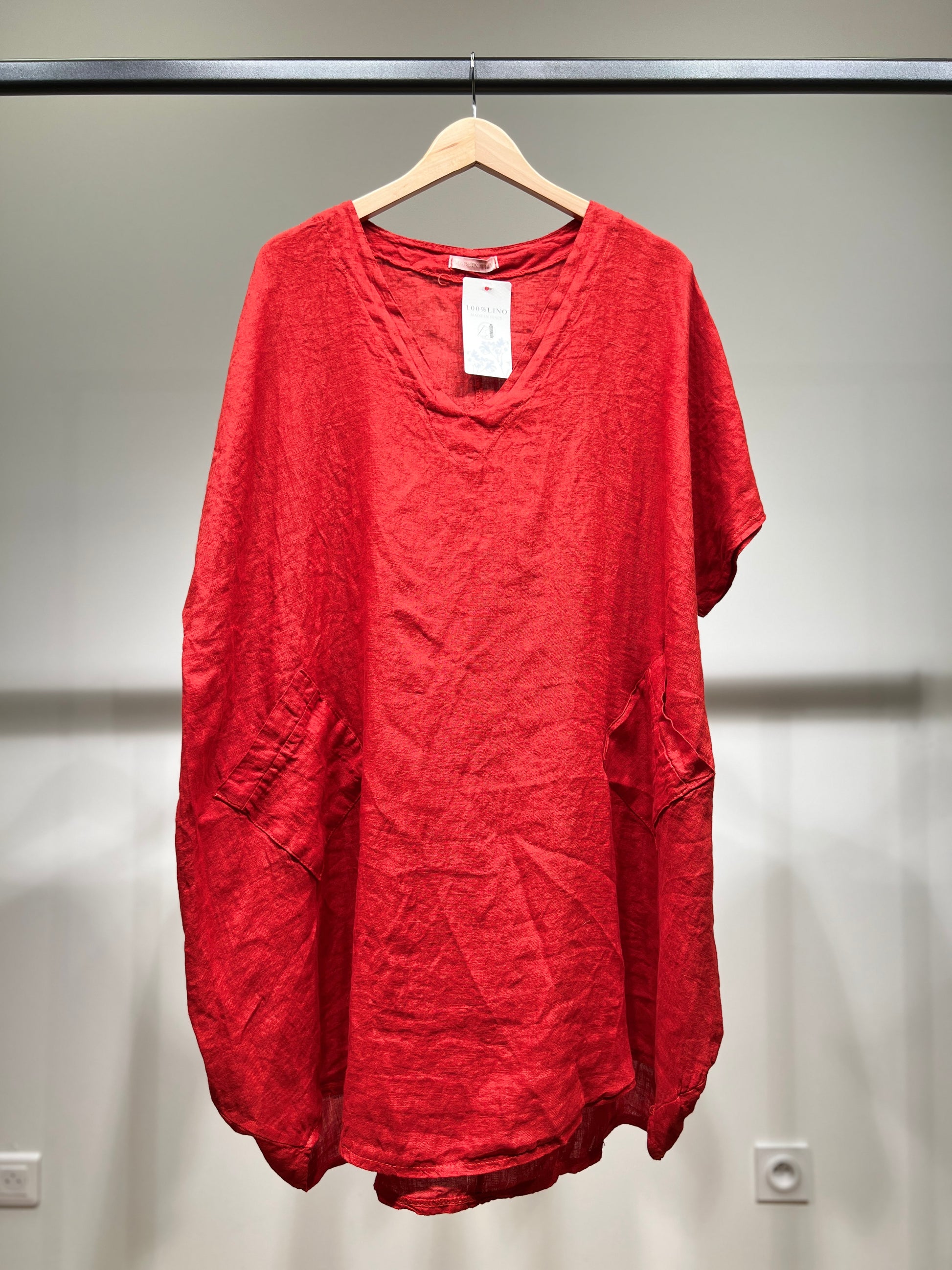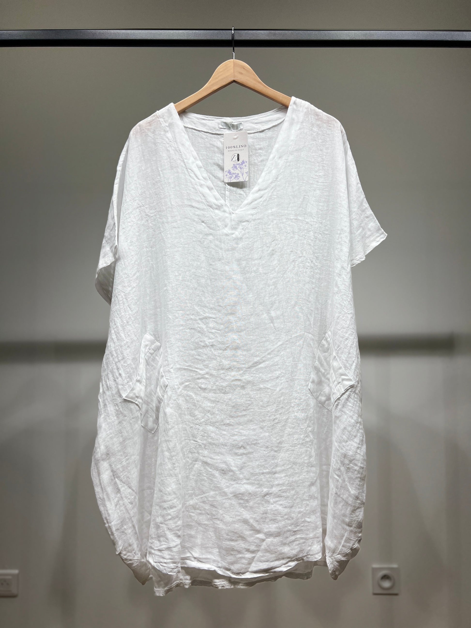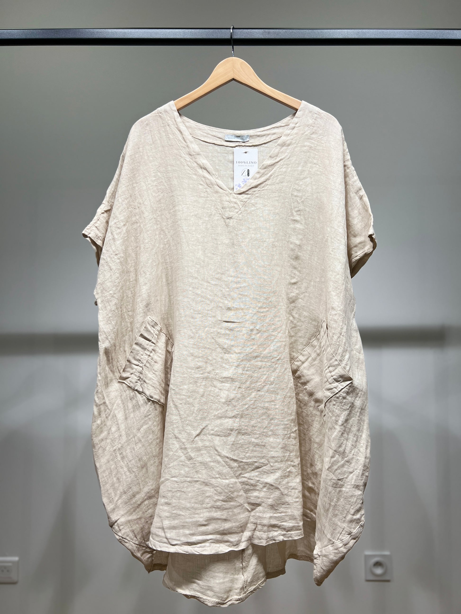 Tunique Large Col V Manche Courte à Poches 100% Lin Taille Unique Convient Aux Tailles 38-48