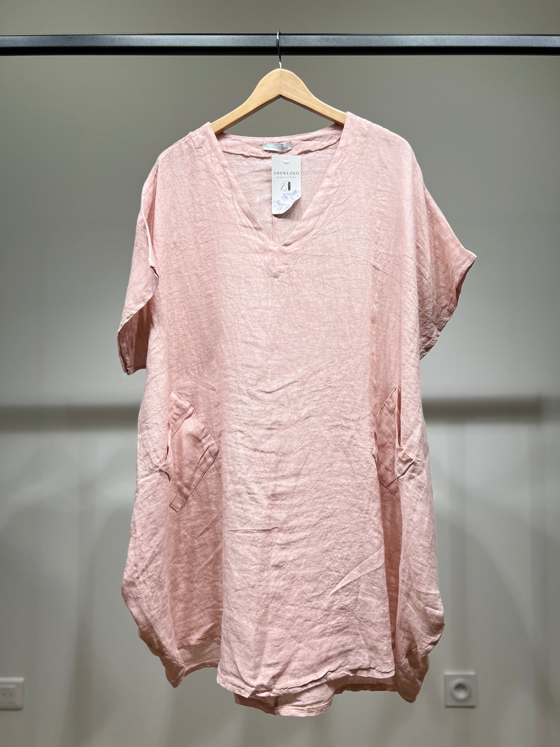 Tunique Large Col V Manche Courte à Poches 100% Lin