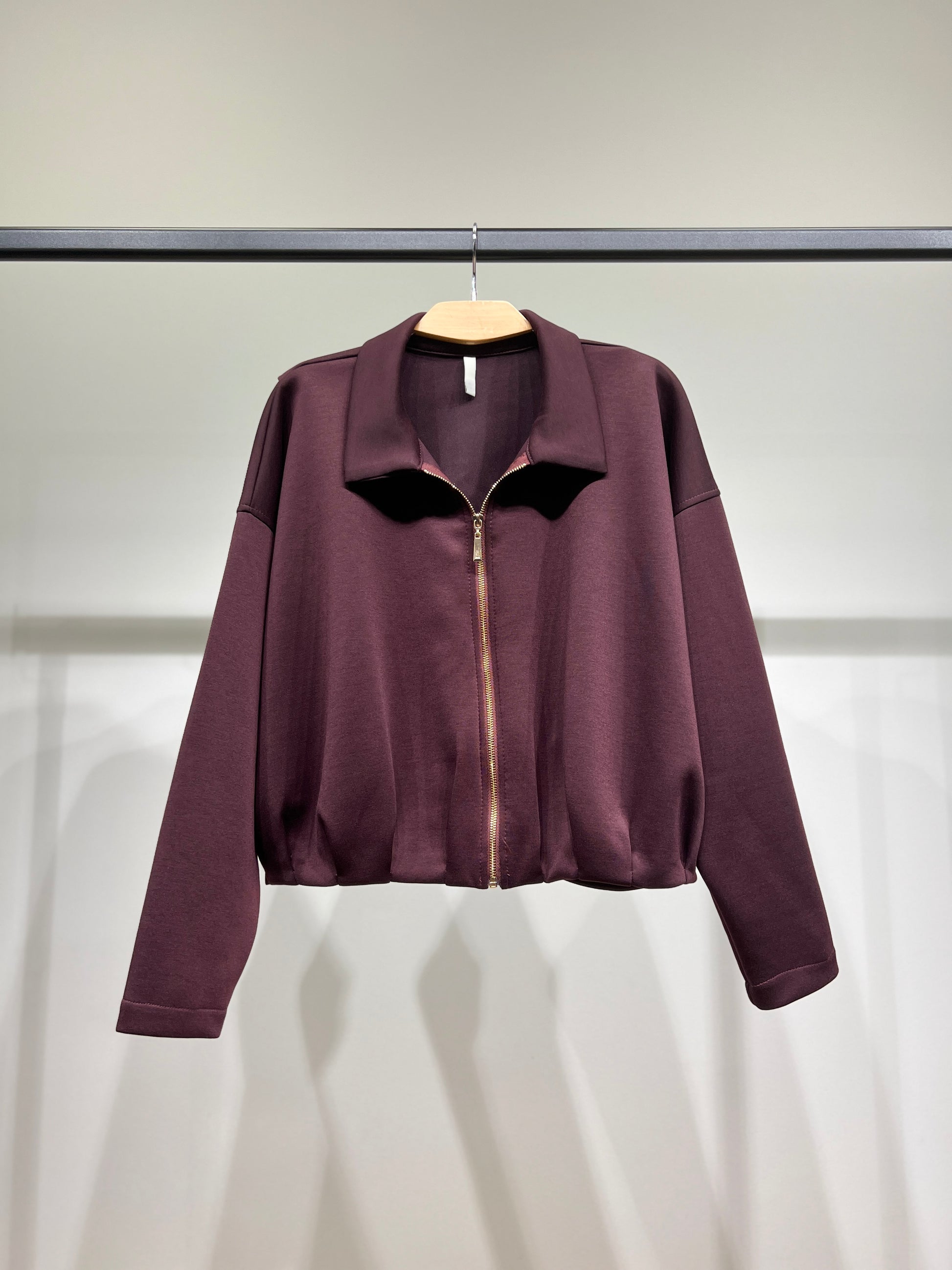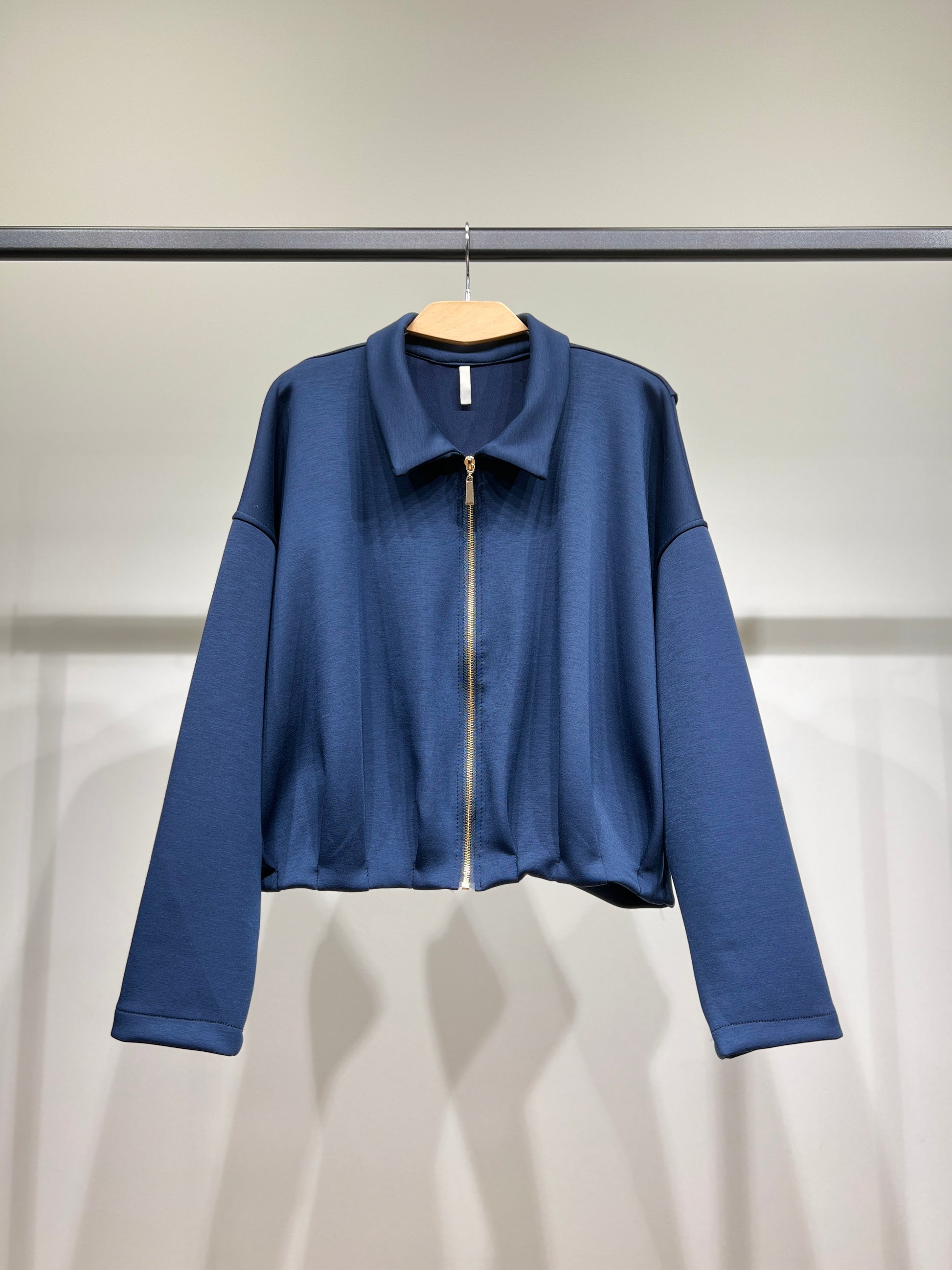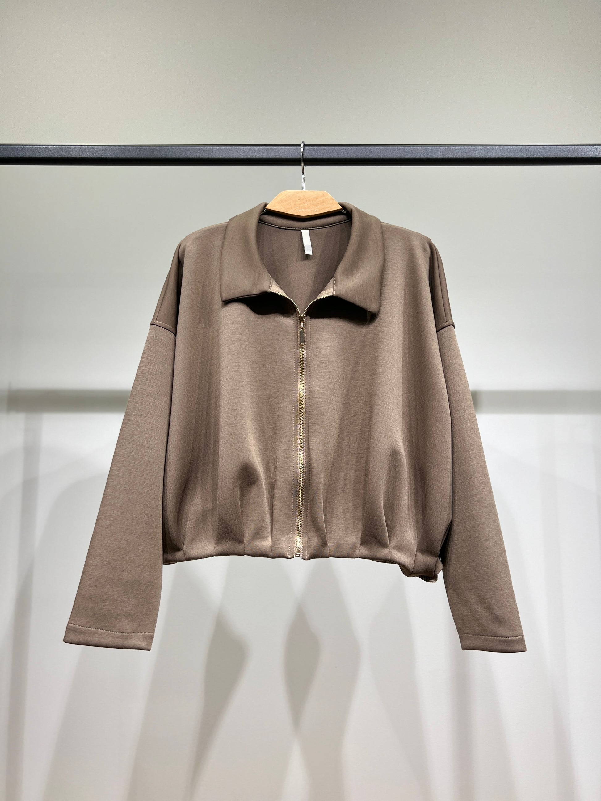 Veste Confort Col Chemise Zippé Cropped Coupe Blousante Taille Unique Convient Aux Tailles 34-44