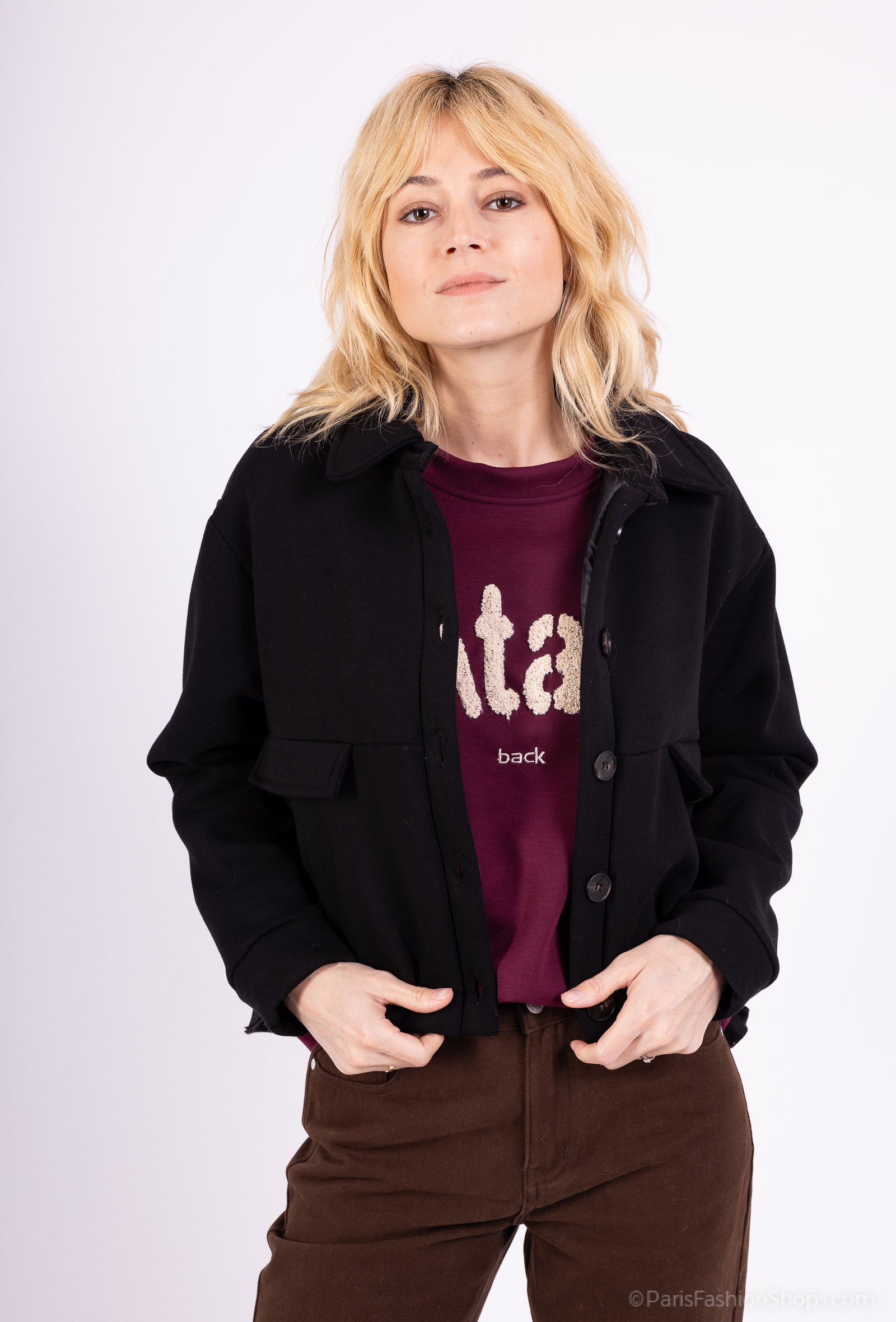 Veste Coupe Ballon Cropped Col Chemise Boutonné 65% Coton