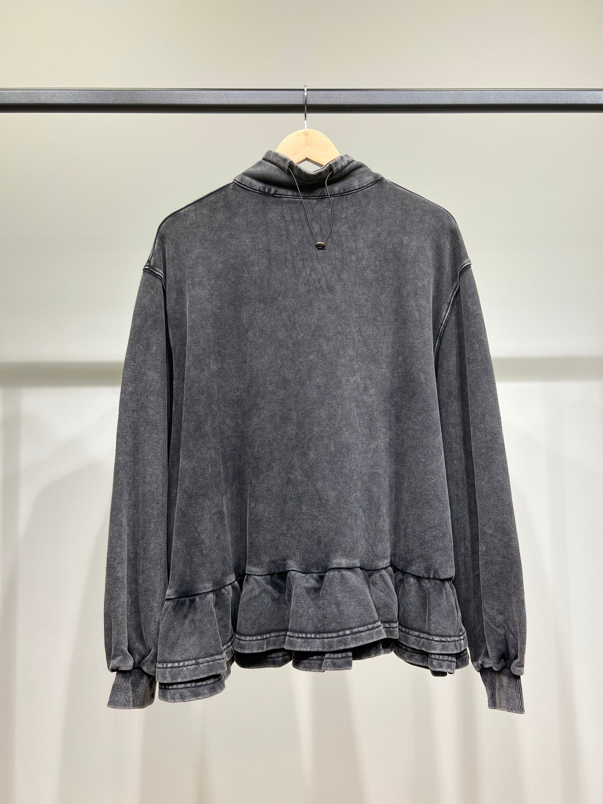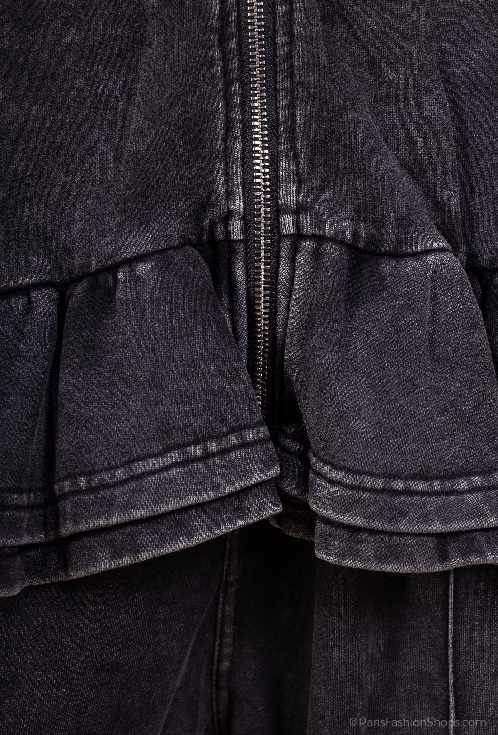 Veste Zippée Col Montant Effet Délavé Volants Bas 100% Coton
